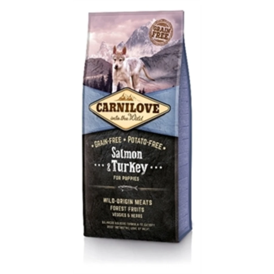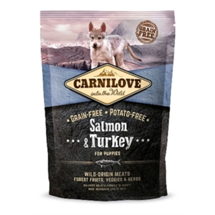 Carnilove Salmon / Turkey Puppies is graanvrij, kwalitatief hoogwaardig hondenvoer voor jonge honden, aansluitend bij de natuurlijke voedingsbehoefte van de hond. Deze puppybrokken zijn geheel vrij van aardappel en graan, omdat deze ook niet in het natuurlijke dieet van de wilde hond en wolf voorkomen. In plaats daarvan is er gebruik gemaakt van ingrediénten die beter aansluiten bij de voedingsbehoefte van de pup, namelijk een hoog aandeel dierlijke ingrediënten gecombineerd met verse groenten, fruit, kruiden en mineralen.