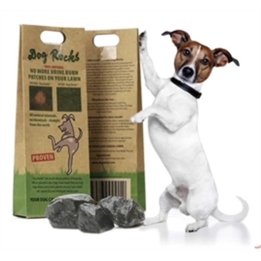 Dog Rocks zijn stukjes vulkanisch gesteente bestaand uit natuurlijke mineralen, die in de waterbak van de hond worden gelegd. Bij juiste gebruik zorgt de filterende en zuiverende werking van de stenen ervoor dat lelijke plekken in het gazon, die ontstaan door overmaat aan nitraten in urine, voortaan worden voorkomen.