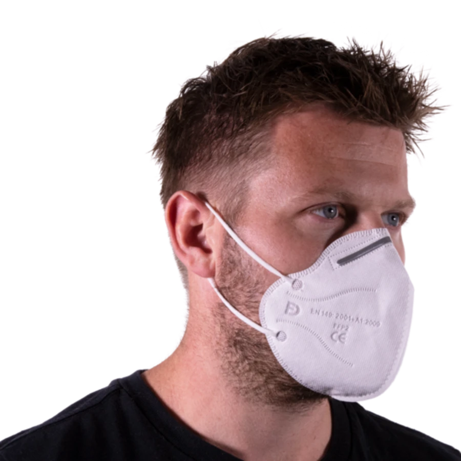 FFP2 volgens EN 149:2001+A1 (komt overeen met KN95 / N95). Persoonlijk beschermingsmiddel volgens Verordening (EU) 2016/425