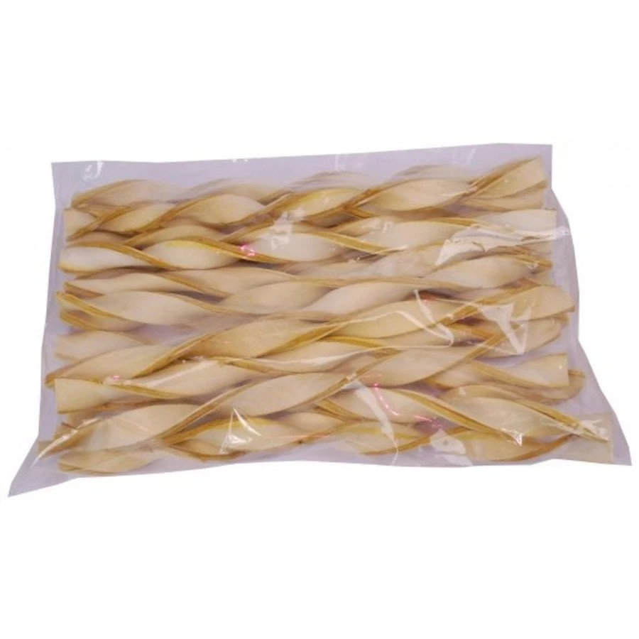 Deze kipwokkel is ene kauwsnack welke bestaat uit twee lagen gedraaide buffelhuidrepen, met daartussen een laagje kip. Deze kauwsnack is ongeveer 33 cm lang, gegarandeerd kauwplezier dus!