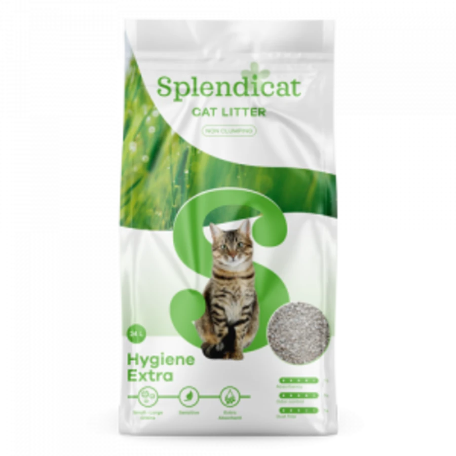Splendicat Hygiene Extra is een niet-klontvormende kattenbakvulling gemaakt van klei. De 100% natuurlijke klei absorbeert sterk en houdt geurtjes efficiënt vast. Deze kattenbakvulling is ongeparfurmeerd en hierdoor ideaal voor gevoelige katten.