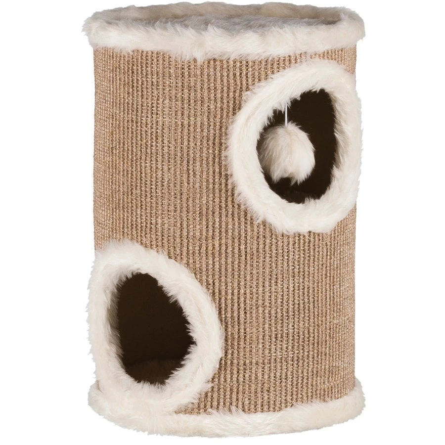 Cat tower Edoardo is de toren met zachte materialen waaraan uw kat zonder schuldgevoel kan krabben. Deze toren heeft een schuilplaats met pluche/fleece (polyester) binnenin. Daarnaast is de bovenste ligplateau bekleed zodat uw kat zacht ligt. De toren is gemaakt van sisal/pluche (polyester): 370 g/m².