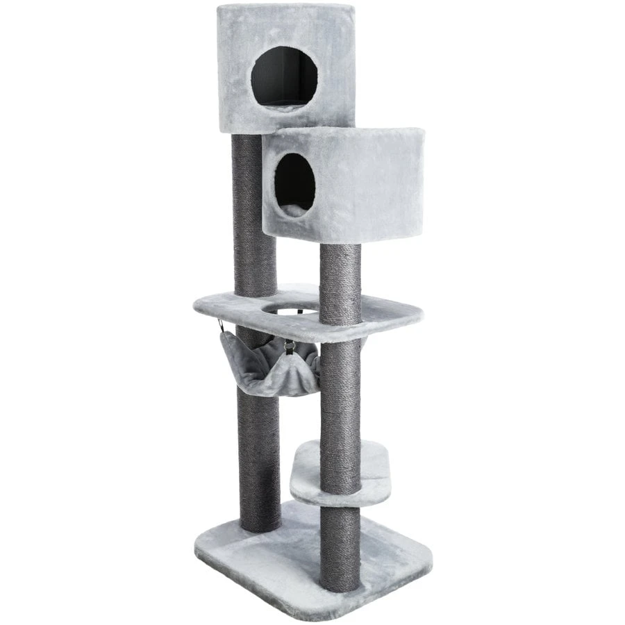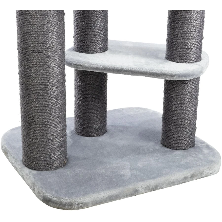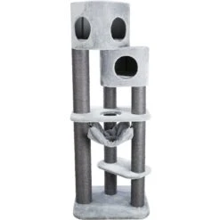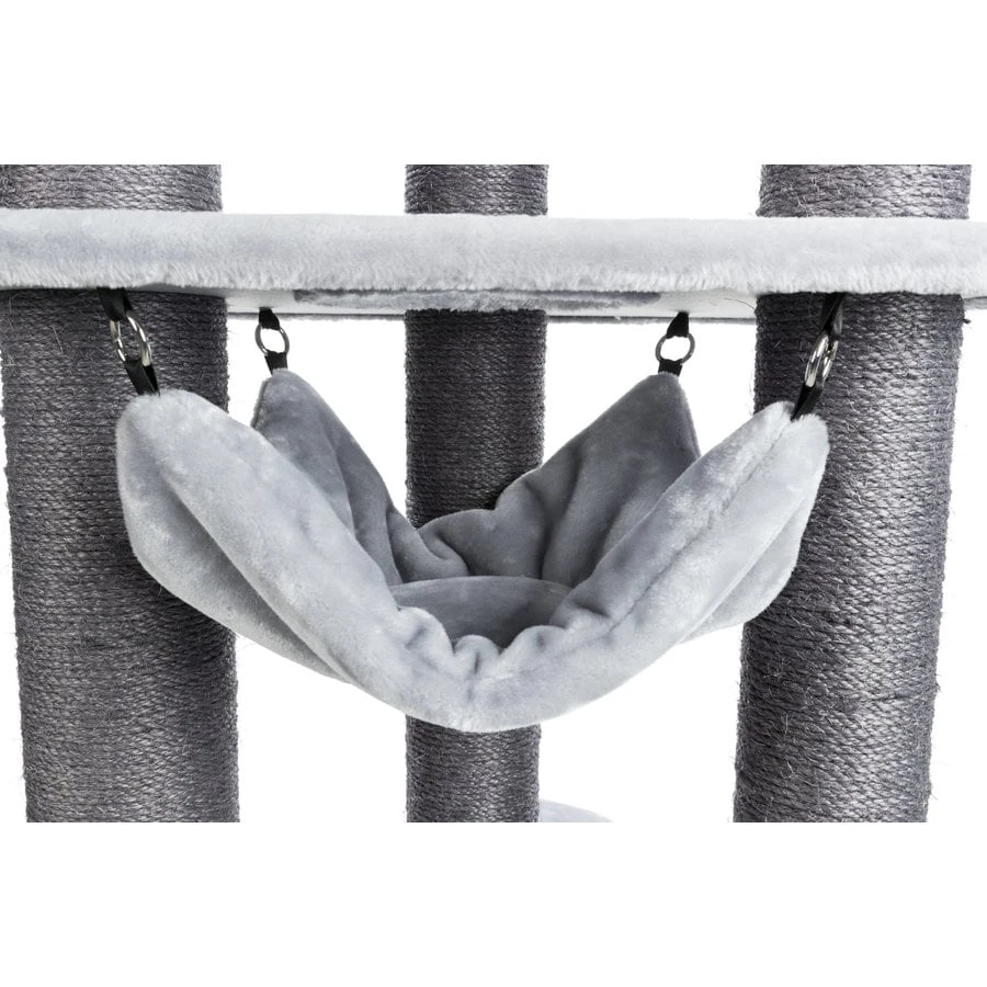 Krabpaal Pirro is een krabpaal welke geschikt is voor meer dan alleen krabben. Deze paal heeft schuilplaatsen met binnenin pluche/fleece (polyester). Met de 2 wendbare kussens ligt uw kat heerlijk zacht. Deze kunnen met de hand gewassen worden. In de afneembare hangmat kan uw kat bijkomen van het speelplezier. De mat is gevoerd en kan ook met de hand worden gewassen. De paal is gemaakt met sisal: ø 6 mm/pluche (polyester): 600 g/m².