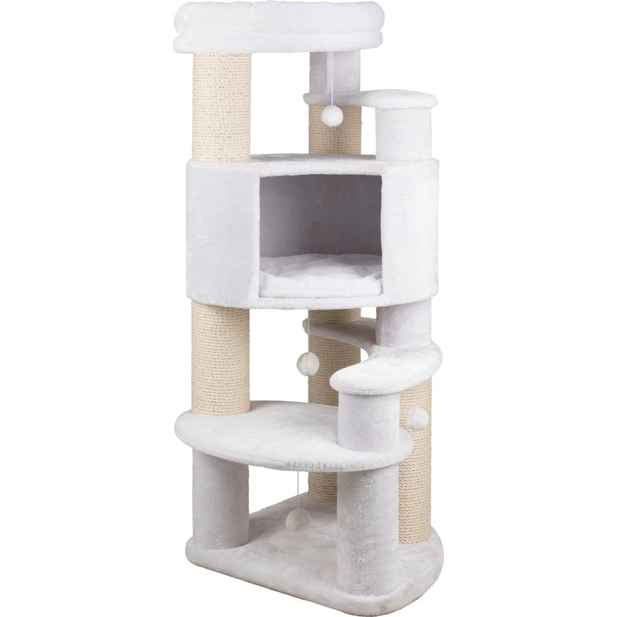 Krabpaal XXL Zita is een multifunctionele krabpaal met rust- en krabplekken. Deze paal heeft een schuilplaats geheel met pluche (polyester) bekleed en een wendbaar kussen. Dit kussen kan met de hand gewassen worden. Daarnaast zijn er gevoerde ligplateaus en een van de plateaus heeft een afneembare relax-mand. De paal is gemaakt met sisal: ø 8 mm/pluche (polyester): 280 g/m².