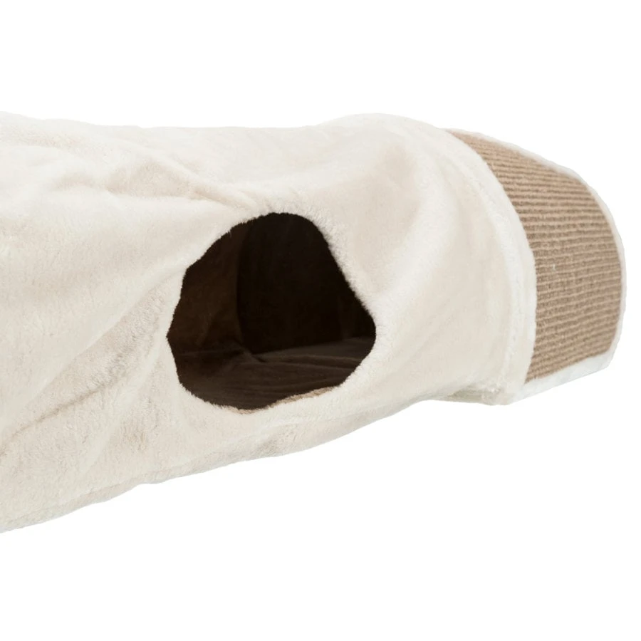 Deze Krabtunnel met sisal is ideaal voor katten die graag hun klauwen gebruiken. Deze tunnel bevat 2 schuilplaatsen met sisal-krabvlak. De schuilplaats binnenin is geheel met pluche bekleed (polyester). Aan de koorden binnenin bevinden zich speeltjes. Deze tunnel is gemaakt van sisal en pluche (polyester).
