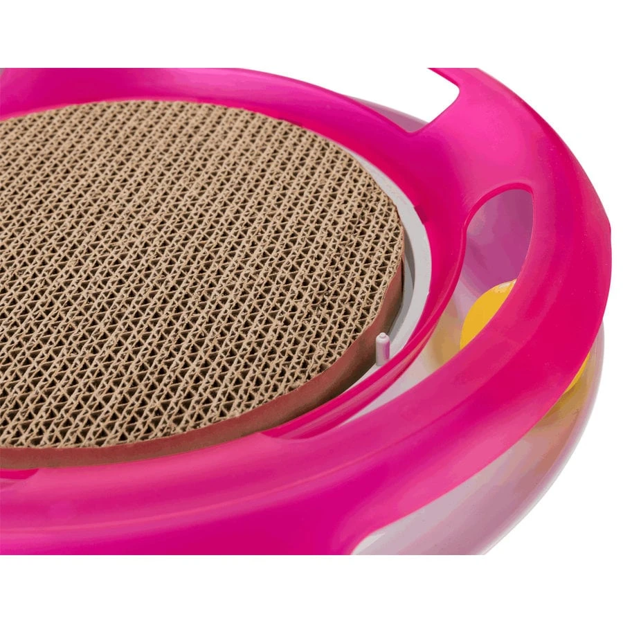 Race & Scratch is het krabspeelgoed met een speelballetje welke te vullen is met catnip of een ratel. Het speeltje is slipvast door rubberen voetjes en is gemaakt van kunststof en krabkarton. Het speelballetje is eenvoudig open te schroeven.