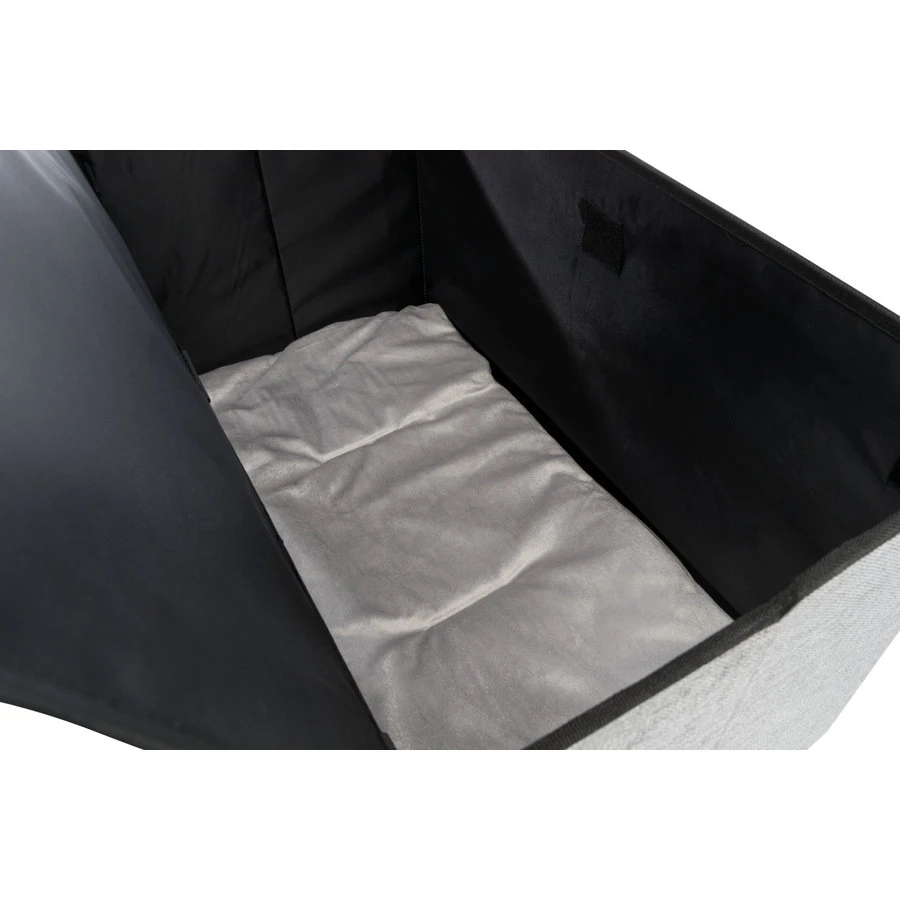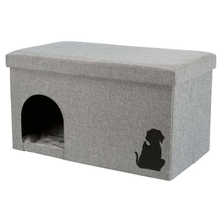 Schuilplaats kimy is de rustplek voor kleine honden en katten. Het hol kan geheel van bovenaf geopend worden dankzij de klittenbandbevestiging onderaan het opbergvak. De doos bevat geweven stof (polyester) en het kussen is ook gemaakt met pluche bekleding (polyester) en doorgestikt polyestervlies vulling. De doos is makkelijk op te vouwen en bevat een afneembaar, bekleed deksel en opbergvak. Voor maximaal een gewicht van 20 kg.
