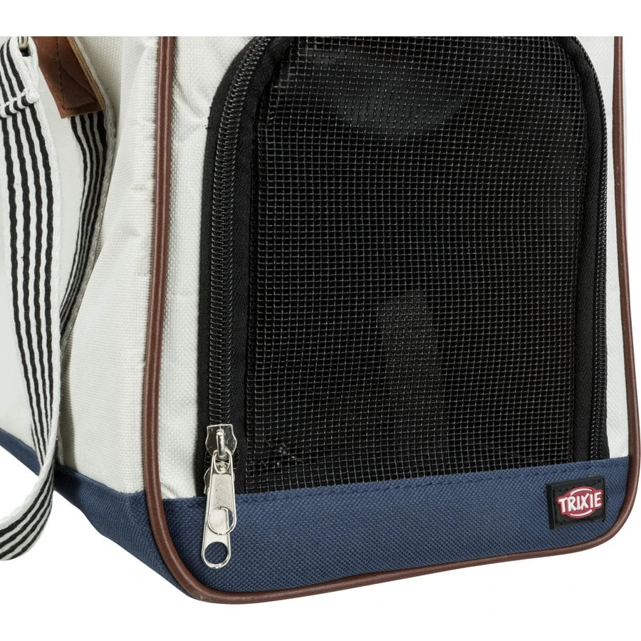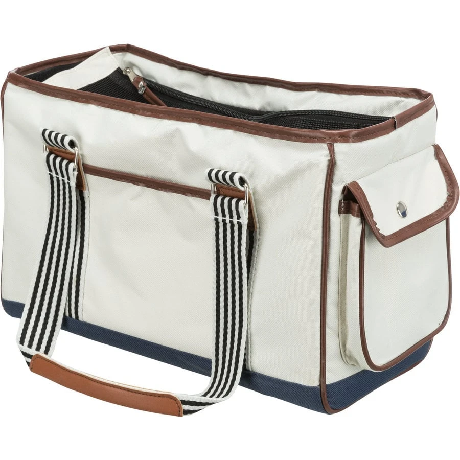 Tas Elisa is een stijlvolle tas waarin u uw kat mee kunt nemen onderweg. De tas is aan de boven- en voorkant te openen. Daarnaast bevat het buitenvakken en geïntegreerde korthouder. De tas is gemaakt met een canvas look met kunstleer (polyester) afgezet. En om uw kat niet koud te laten worden is de tas ook gevoerd.