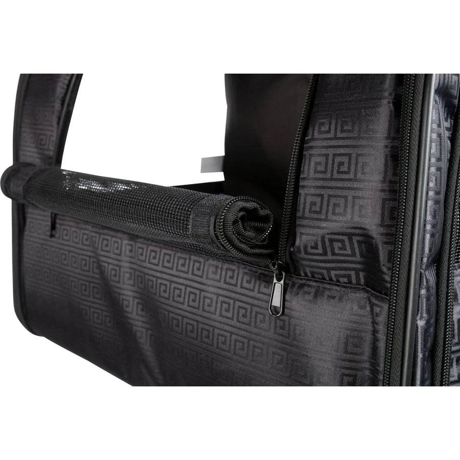 Trolley Elegance is een makkelijk te gebruiken trolley voor het vervoeren van uw kat. De trolley bevat een inschuifbaar telescoop-handvat en is aan de zij- en voorkant te openen. Daarnaast bevat het buitenvakken en een geïntegreerde korthouder. De bodemplaat bekleed met schapenvacht look/nylon is eenvoudig uit de trolley de halen. De trolley is gemaakt met een polyester jacquard print.