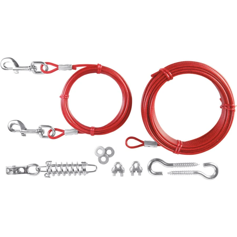 Vastlegspiraal met Looplijn bevat een schokdempende springveer beschermt de hond tegen verwondingen. Deze is makkelijk aan bomen of muren te bevestigen. De kunststof coating gaat roestvorming tegen en vereenvoudigt het schoonmaken. De looplijn met 3 meter katrol.