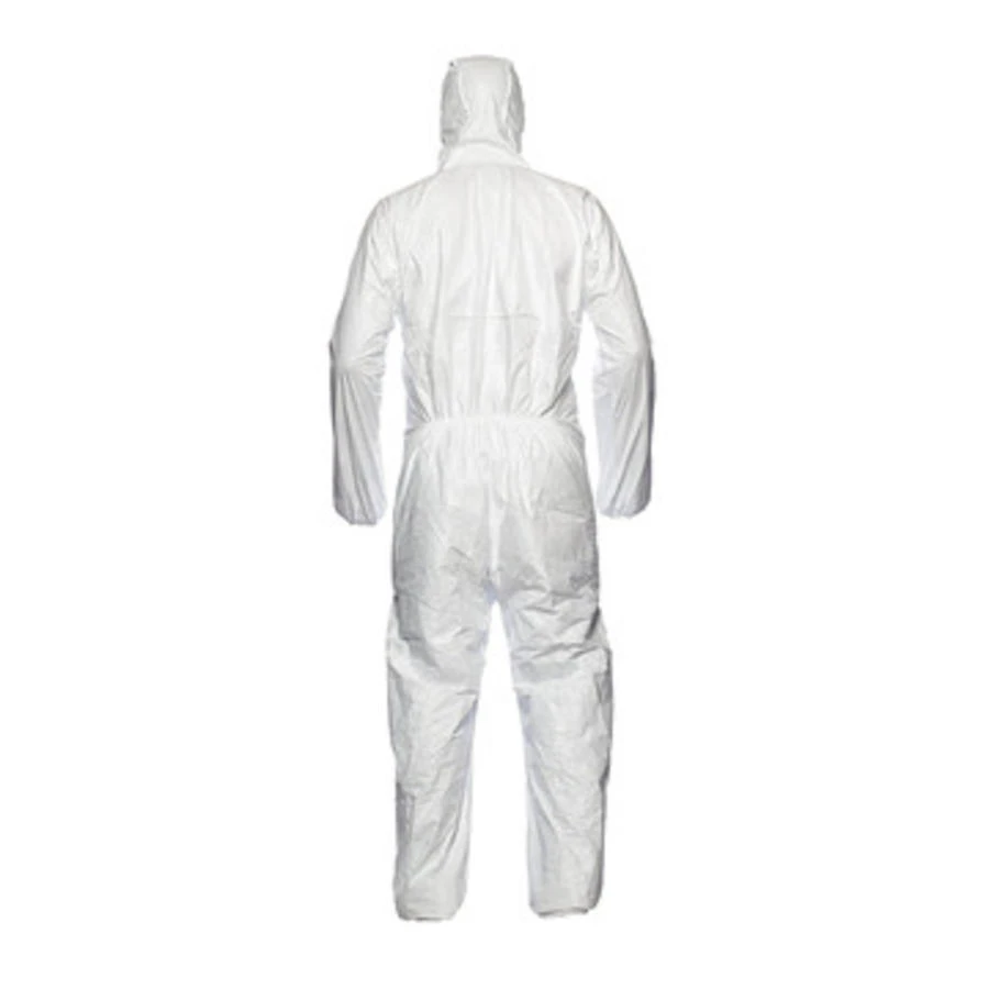 Deze disposable overall van sterk Tyvek biedt een goede combinatie op gebied van bescherming, duurzaamheid en comfort. Beschermt tegen vloeistofnevels van chemicaliën op waterbasis en vaste deeltjes. Beperkte bescherming tegen vloeibare chemicaliën. Elastieken in de capuchon en de manchetten bij de polsen/enkels zorgen voor een goede afsluiting. Voorzien van rits met overslag voor optimale bescherming.