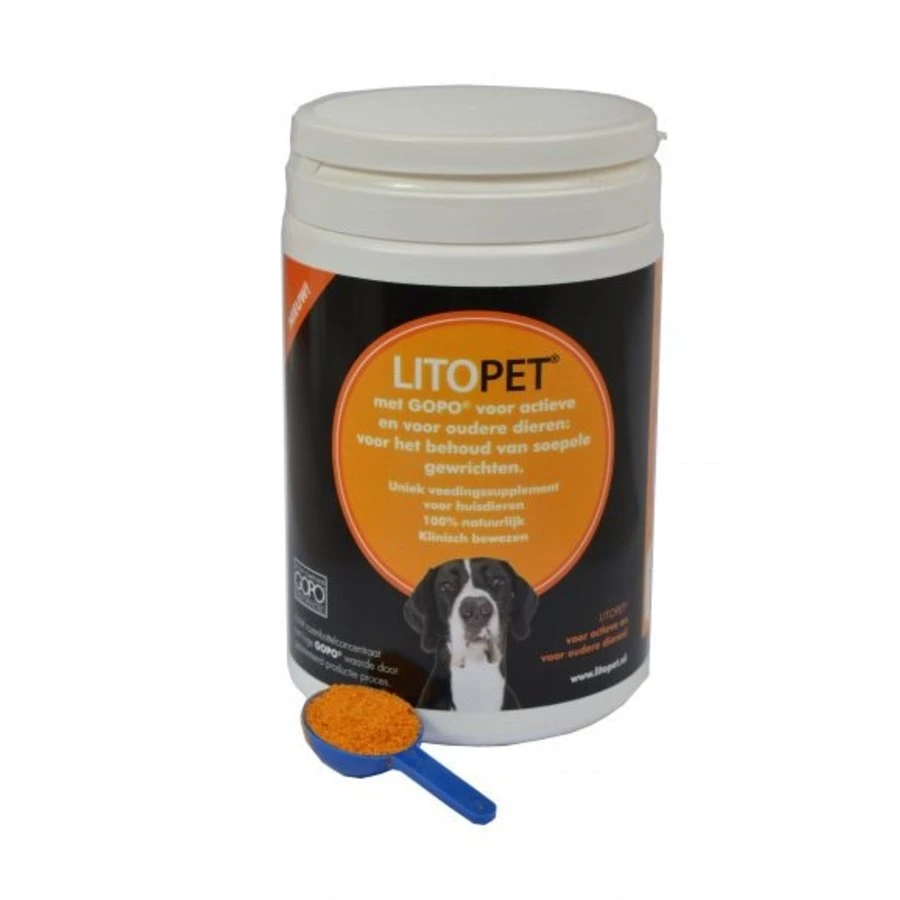 Maar het meest bijzondere aan LITOPET is de aanwezigheid van de inhoudsstof GOPO®. Dit heeft van nature een ontstekingsremmende werking. Iets waar honden met gewrichtsslijtage vaak last van hebben. Daarnaast helpt GOPO bij het aanmaken van het beschermde collageen waardoor de beweeglijkheid van de gewrichten wordt bevorderd.